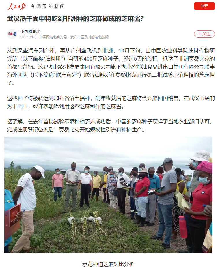 人民日報:武漢熱干面中將吃到非洲種的芝麻做成的芝麻醬?
